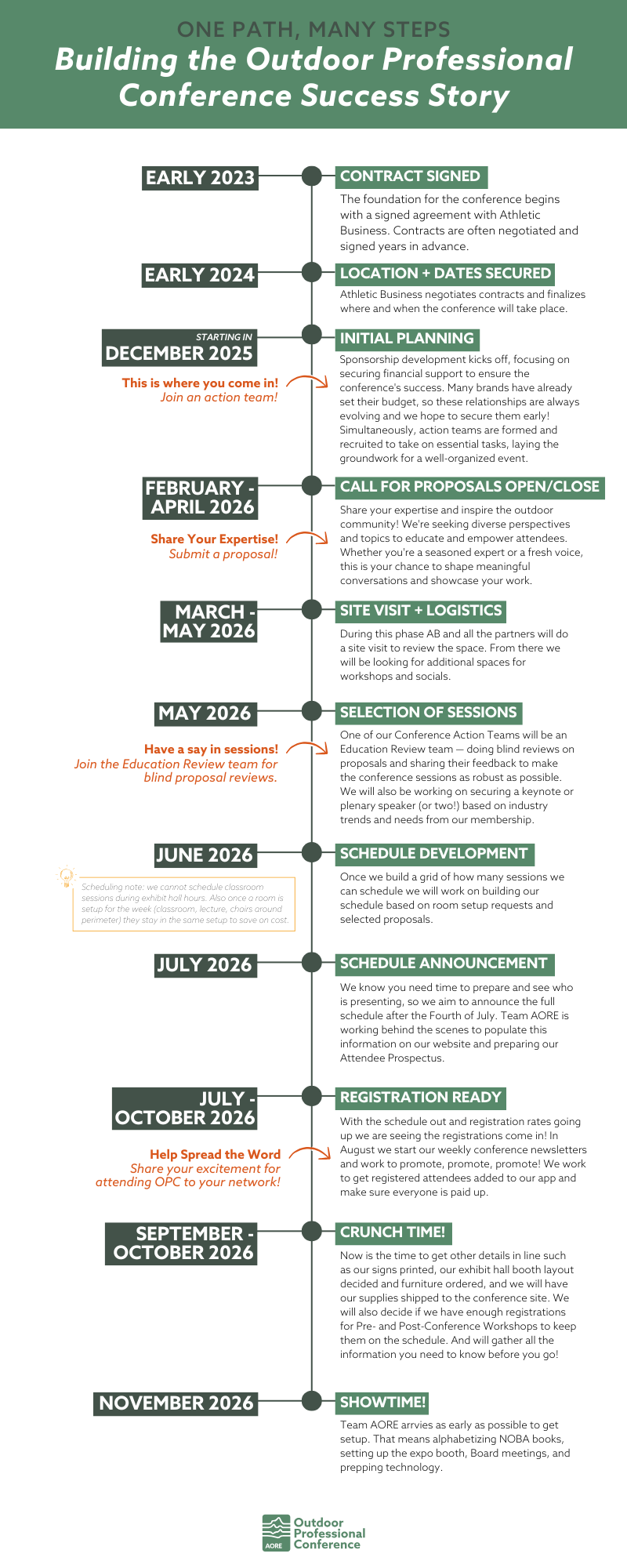 We need your input along the way to ensure it's an event designed for what you want and need. This is your official invitation to help us plan our next Outdoor Professional Conference!